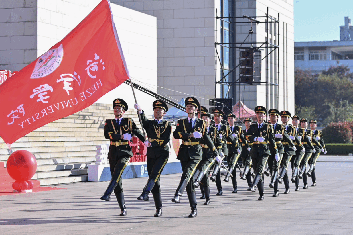 我校国旗护卫队在赛场上沉着坚定、动作标准、配合默契,展现出昂扬的精神风貌与过硬的队列素养,充分展现了菏泽学院学子良好的精神风貌、高度的纪律意识与专业的训练素养。