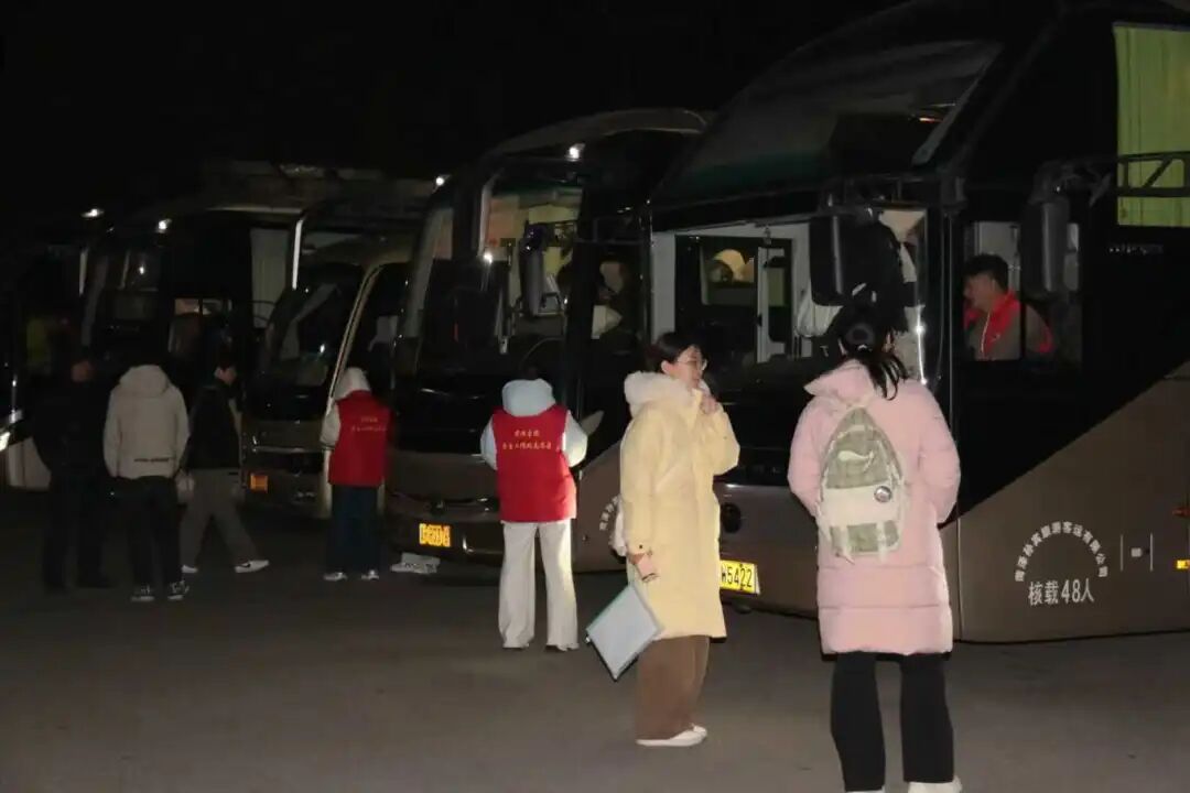 6时30分,最后一批考生顺利登车。志愿者们站在车窗外,用目光为考生们默默加油鼓劲;透过明净的车窗,考生们脸上洋溢着自信的笑容,以最佳状态迎接这场重要的考研。与此同时,菏泽学院派出的客车缓缓启动,载着考研学子,平稳驶向远方的考场。