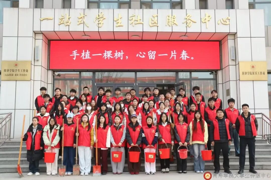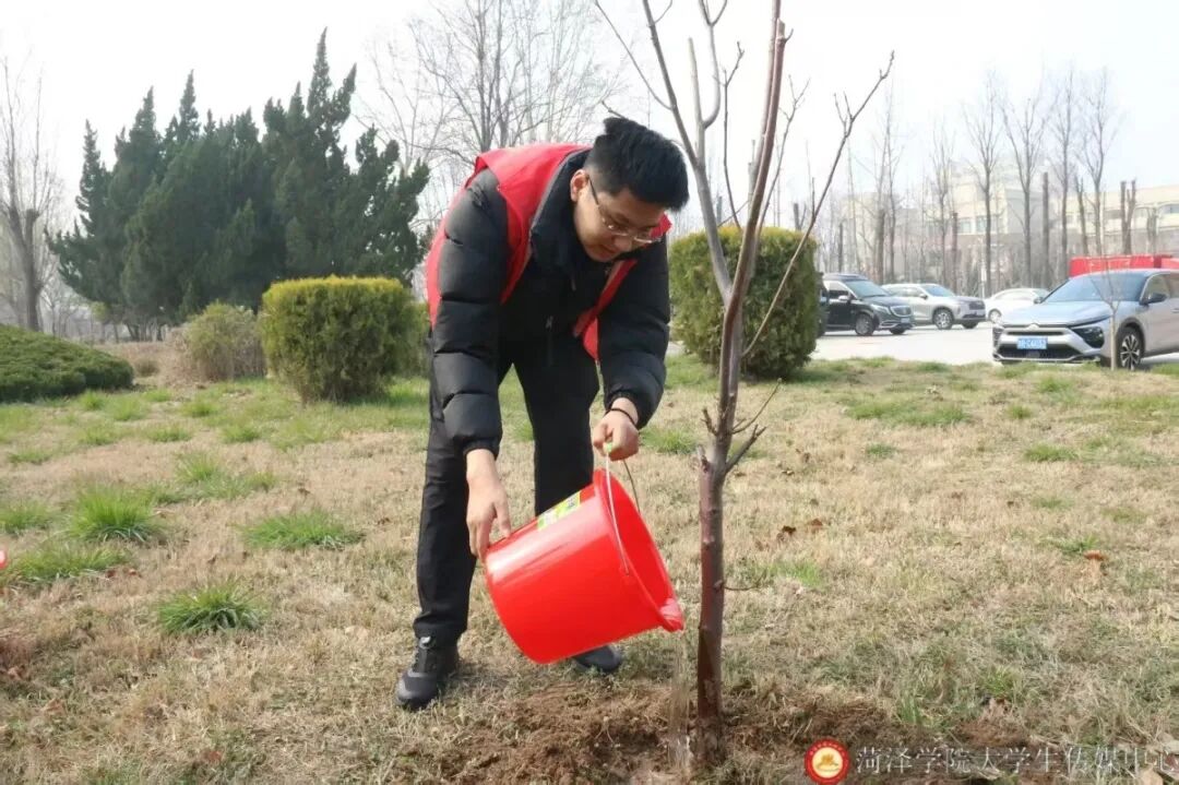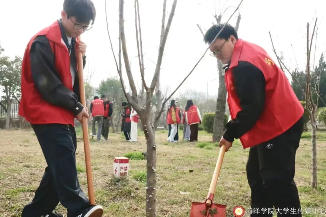 活动现场,各学生组织志愿者们分工协作、默契配合,挥锹铲土、扶苗定植、培土压实、提水浇灌,每一个环节都认真细致、井然有序。大家以饱满的热情投入劳动,汗水浸润衣衫,笑容洋溢脸庞,用实际行动播撒绿色希望,展现出菏院青年昂扬向上、团结奋进的精神风貌。经过辛勤劳作,一株株新苗迎风挺立,为春日校园注入了勃勃生机。