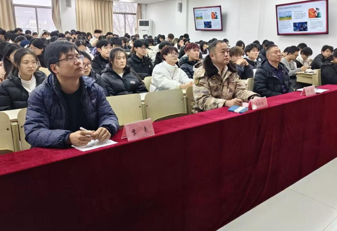 宣讲会伊始,学院学生会主席冯喜琳围绕“当前国际形势与国防使命”“国家军事实力今昔跨越”“大学生参军核心优势”“2026年征兵时间与报名指南”四大板块展开分享,通过详实的数据与鲜活的案例,让在场学生对参军报国的意义与路径有了清晰认知。