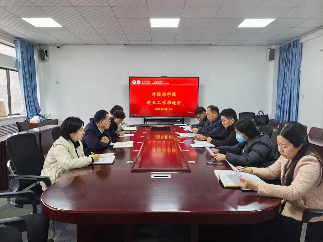 为进一步推进2026届毕业生就业工作,帮助毕业生了解就业形势、更新就业观念,更好地实现高质量就业,3月18日下午,外国语学院在7号教学楼212会议室召开就业工作推进会。外国语学院党委班子成员、2026届毕业班班主任和全体辅导员参加,会议由党委副书记张丽竞主持。