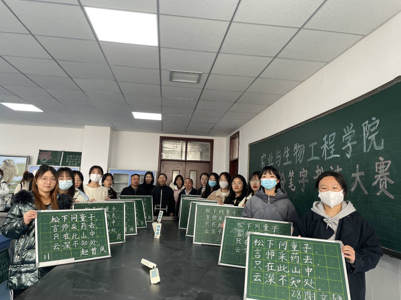 为提升师范生从业技能水平以及综合素养,增强学生写好粉笔字的意识,积极引导大学生树立正确的语言观。由农业与生物工程学院主办,学生联合会学习部承办的师范生粉笔字书法大赛于11月21日上午九点半在综合实验楼E501举行,参与本次活动的有张明院长,孙西寨主任,李稳老师、郭锐颖老师以及任少亭老师和农业与生物工程学院40余名师范生。