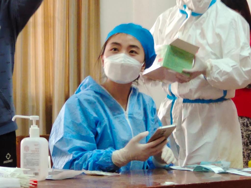 为提前熟悉掌握核酸采集流程,提高核酸检测效率,高靖老师积极参加核酸检测信息员培训。核酸采集现场,我院高靖老师积极配合医务人员,认真扫取学生的核酸检测码,核对学生身份信息,确保每个采样信息的正确录入,有序保证了核酸采集的准确性。