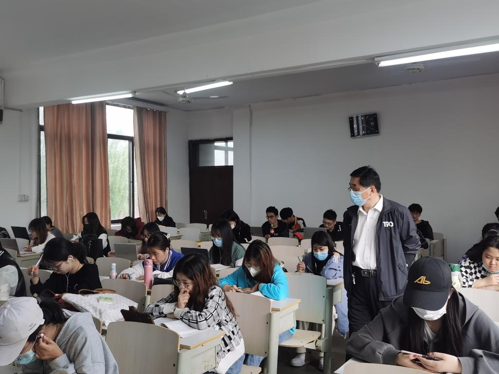封校期间政法学院党委书记朱世民多次前往教室、宿舍查看同学们的上课情况,督促同学们疫情期间一定严格按照学校防疫要求,倡导大家分散学习、用心学习。