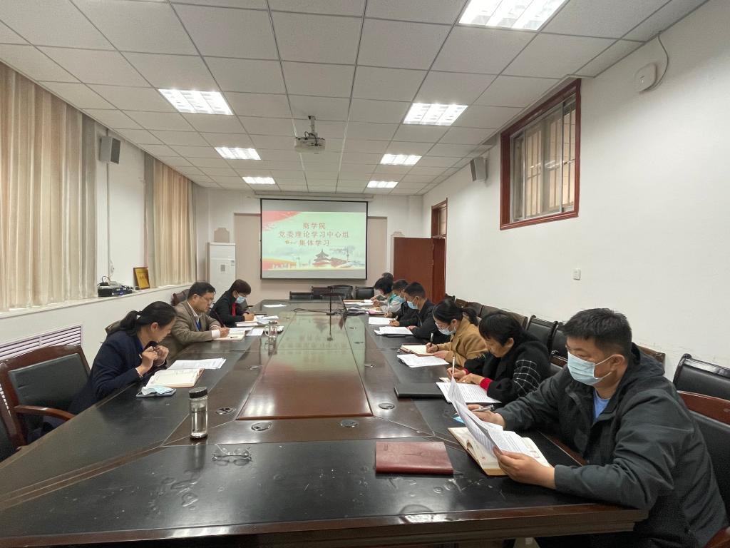 4月29日,商学院党委理论学习中心组在老办公楼119会议室进行集体学习。商学院党委理论学习中心组成员参加会议,院长田建军主持会议。