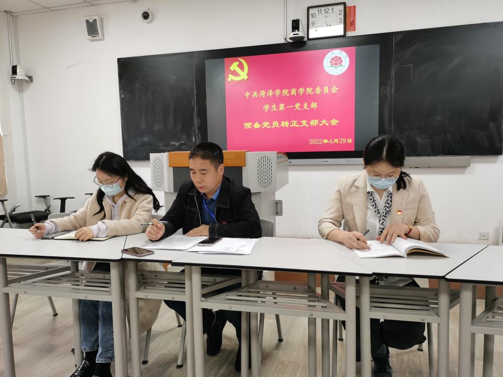 为加强党组织体系建设,充实党员队伍、增强党员意识和党性觉悟。4月29日,商学院各学生党支部分别在8号教学楼207教室、209教室、206教室和线上同步召开预备党员转正大会。商学院学生第一党支部书记李学昌、学生第二党支部书记贺民、第三党支部书记刘兵和各支部师生党员参加此次会议。