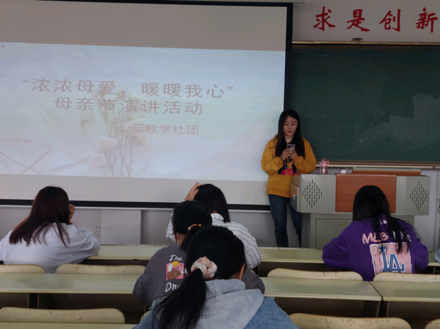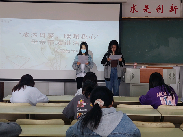 5月14日晚,教师教育学院在8号教学楼414室举办“浓浓母爱,暖暖我心”母亲节演讲活动。教师教育学院学生积极参加本次活动。