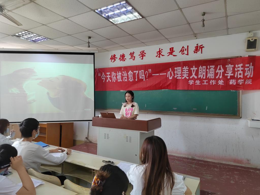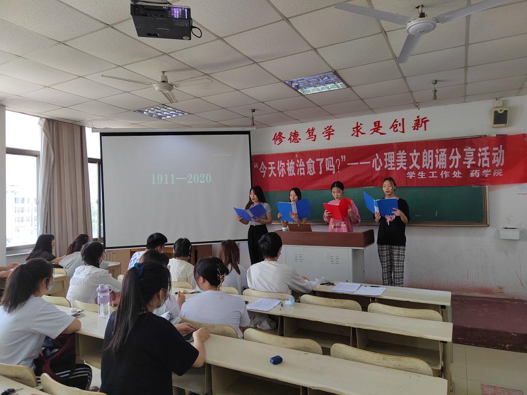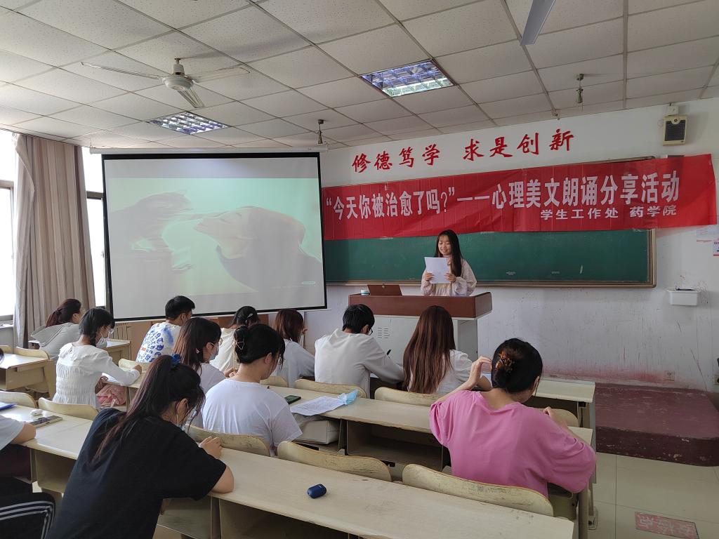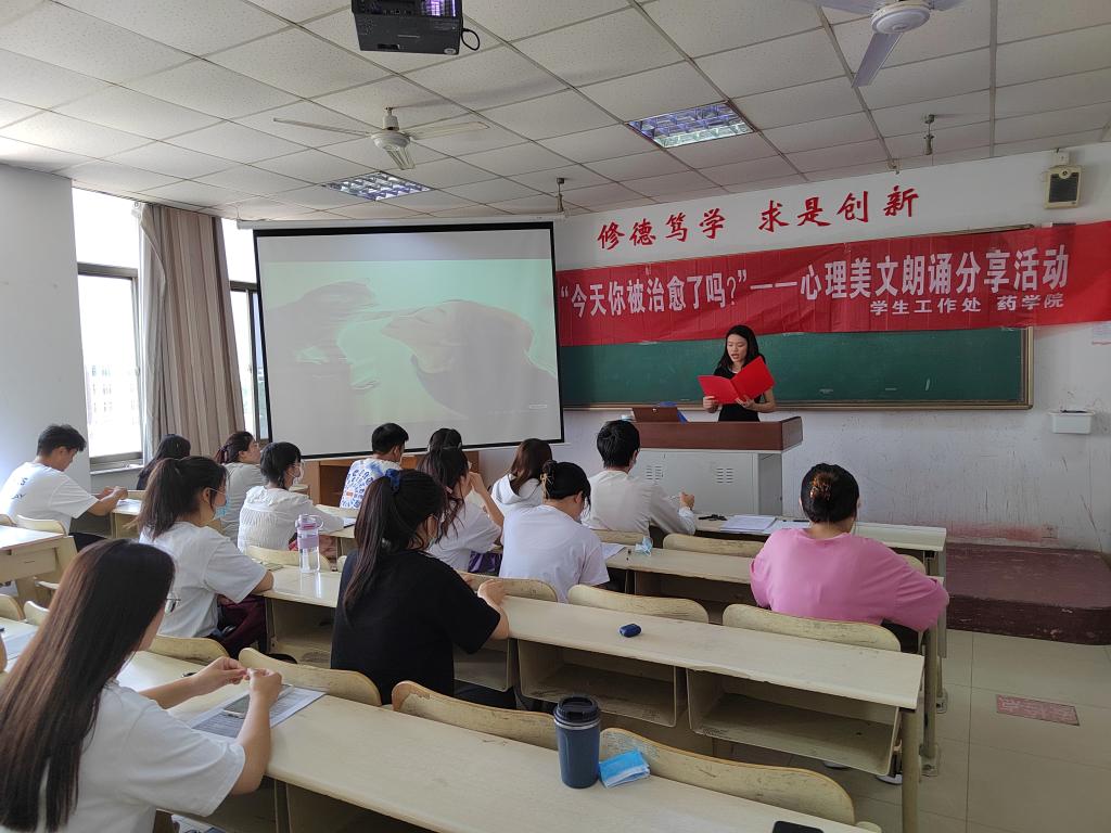 5月22日上午,由菏泽学院学生工作处主办,药学院学生联合会心理健康部承办的心理美文朗诵分享活动于9号教学楼407室开展,药学院党委副书记许腾、学工办主任初汉平、全体辅导员以及50余名学生参加此次活动。