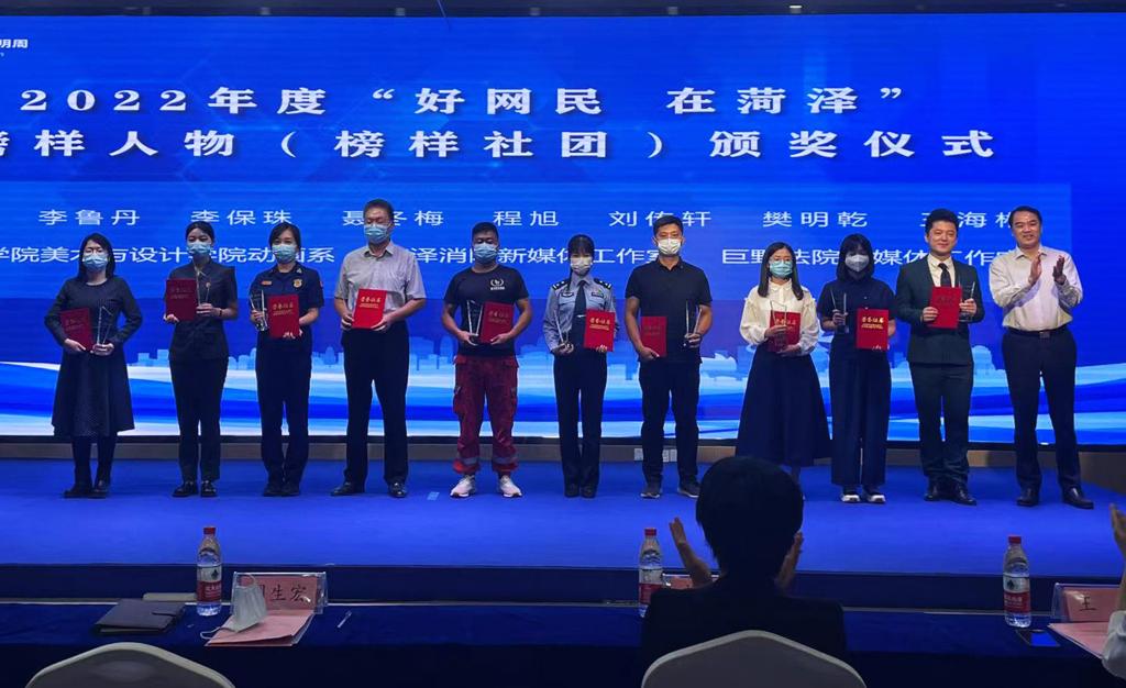 8月29日,主题为“网络文明‘菏’你同行”的2022 山东网络文明周菏泽市启动仪式在市民文化中心举行,菏泽学院美术与设计学院动画系获评2022年度“好网民·在菏泽”榜样社团,动画系主任陈妍言作为获奖代表发言。