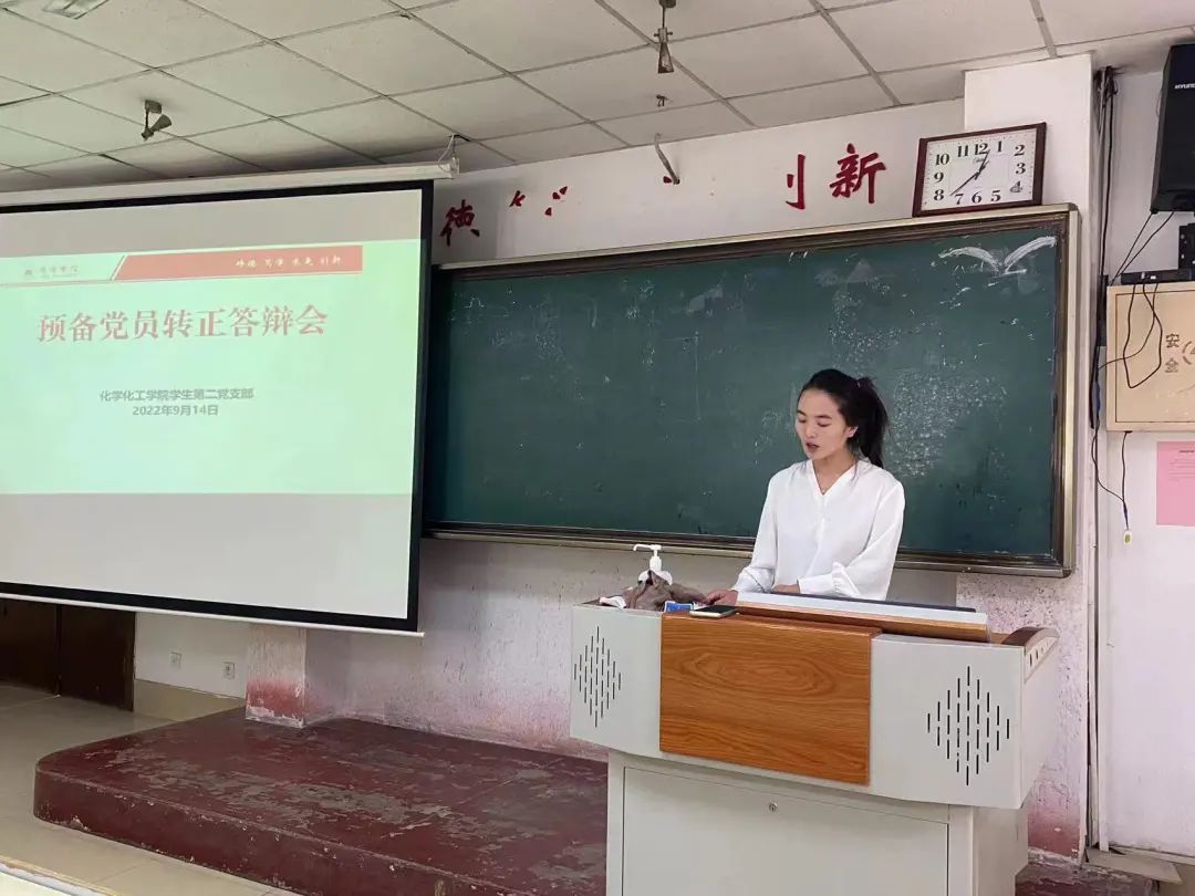 9月14日,化学化工学院学生第二党支部在9号楼104教室召开预备党员转正大会。学生第二党支部书记高靖、辅导员田涛以及第二党支部学生党员参加此次大会。会议由高靖老师主持。